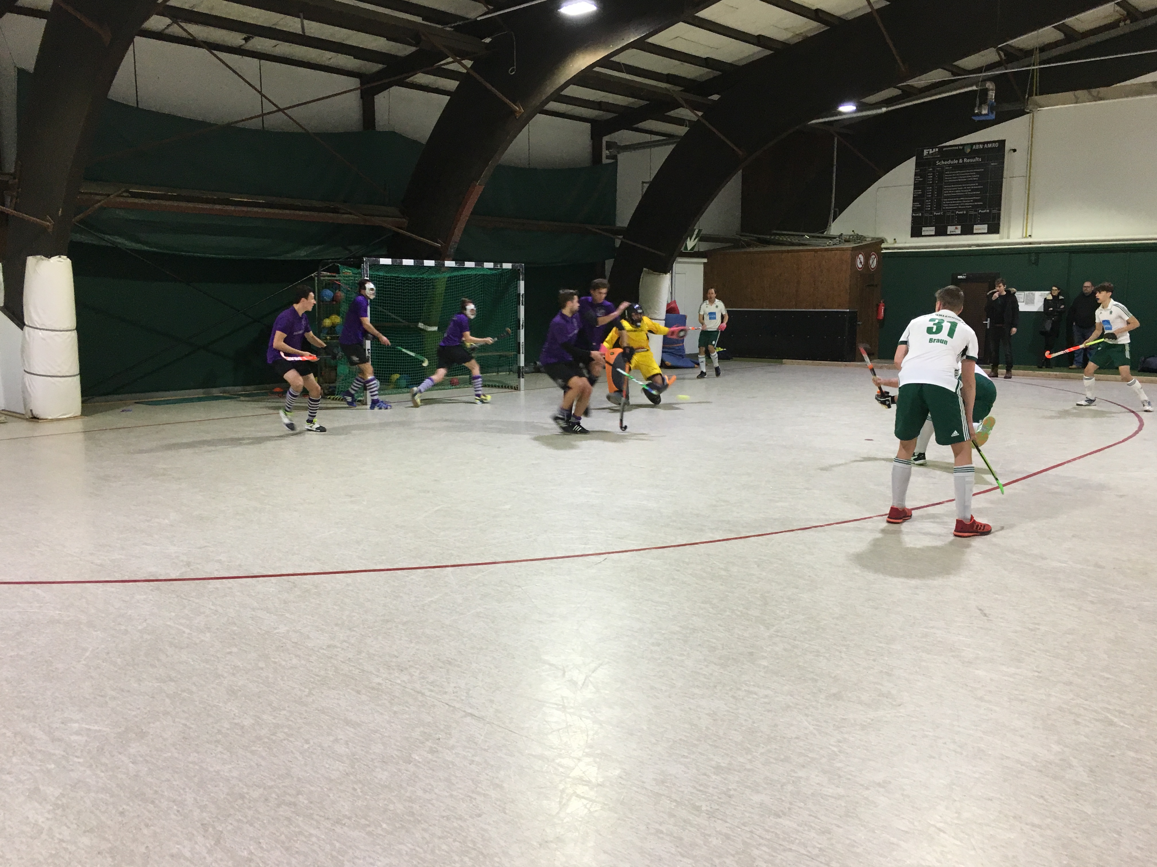 Am frühen Samstagabend ging es ersatzgeschwächt mit nur 8 Feldspielern zum Auswärtsspiel nach HTC Uhlenhorst. In einem sehr kampfbetonten Spiel siegten die Veilchen letztendlich mit 6:4 Toren. Zunächst ein Dankeschön an Florian Köpke, der kurzfristig noch die Mannschaft in der Abwehr gut verstärken konnte. Nach ausgeglichenem Spiel erzielte Patrick Behr in der 14. Minute das 1:0. Doch quasi im Gegenzug erzielten die Uhlen den Ausgleich. Wiederum zwei Minuten später war es Nils Schiffer, der zum 2:1 Halbzeitstand traf. Nach dem Wechsel erzielte Uhlenhorst in der 35. Minute wiederum den Ausgleich. Nun begann die Nils Schiffer Show. Mit einem Doppelpack in der 44. und 45. Minute erhöhte er zunächst auf 4:2. Zwei Minuten später traf Uhlenhorst durch eine Strafecke zum 3:4. Doch die Hiesfelder zeigten sich unbeeindruckt. Wiederum war es Nils mit einem Doppelpack zum 6:3 in der 55. und 57. Minute. Direkt im Gegenzug verkürzte dann Uhlenhorst zum 4:6 Entstand. Am kommenden Sonntag gegen 17:00 Uhr kommt es im letzten Spiel des Jahres in eigener Halle zum Derby gegen den Moerser TV.