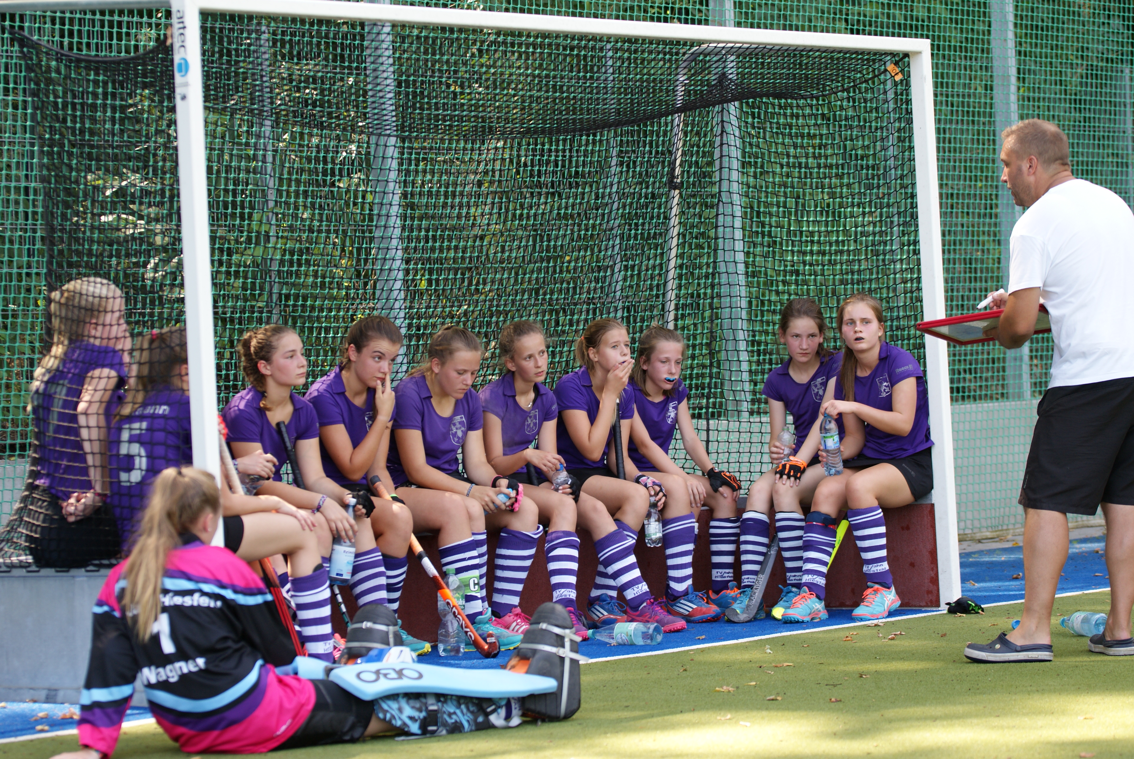 Die Kölnerinnen, die mit dem kompletten Kader angetreten waren, wechselten in der ersten Hälfte permanent durch, hielten das Tempo hoch und drückten unsere Mädels in die eigene Hälfte. Unsere Mannschaft konnte sich nur selten befreien und so fiel auch in der zehnten Minute folgerichtig das 1:0 für Köln. Danach hatte man sich besser auf den Gegner eingestellt und es begann ein zähes Ringen ohne Torchancen auf beiden Seiten. Mit einer kurzen Ecke, die zum 2:0 für Köln führte endete die erste Halbzeit.