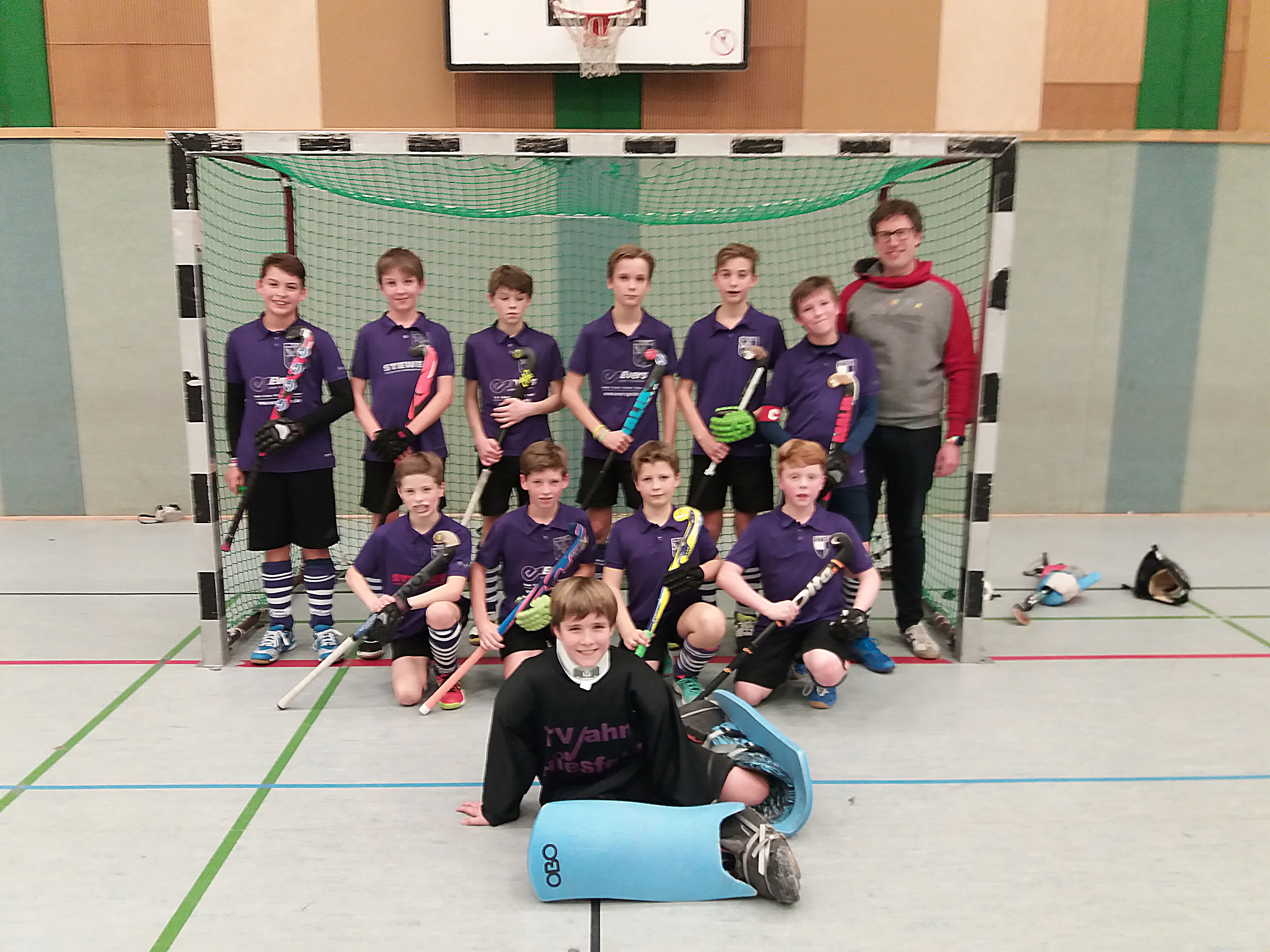 In der zweiten Halbzeit war es der Marienburger Torwart, der zum Teil mit sehr groben Mitteln die Führung der Veilchen verhinderte. Zum Unmut von Trainer Manuel Freynik waren die Schiedsrichter mit der richtigen Bewertung der Spielsituation ein ums andere Mal überfordert. Der Schock kam dann in der 15. Minute. Die Marienburger, die bis dahin kaum über die Mittellinie gekommen waren, nutzen einen Konter zur unverdienten Führung. Die Reaktion der Hiesfelder war vorbildlich. Statt den Kopf in den Sand zu stecken und mit dem Schiedsrichter zu hadern, setzte die Mannschaft die Angriffsbemühungen fort und wurde mit dem Ausgleich belohnt. Nochmals war ein Zusammenspiel von Matz Steidl und Tom Bordin erfolgreich, so dass dieser den viel umjubelten Treffer landen konnte. In der letzten Spielminute setzte Can-Luca Colnar noch einen drauf. Er spitzelte einem Marinenburger Spieler den Ball vom Schläger, setzte sich gegen zwei Gegner kraftvoll durch und schob den Ball am herausstürzenden Torwart zum verdienten 2:1 Endstand vorbei.