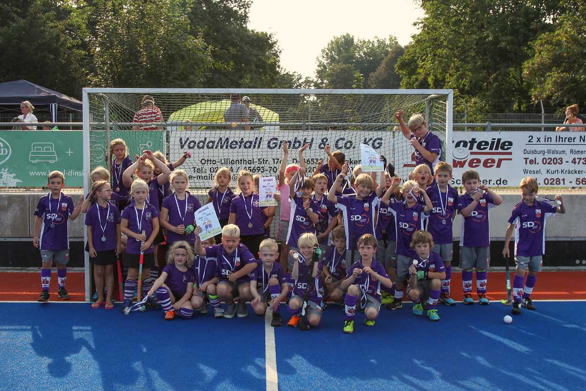 Viele Vereine sind dem Ruf nach Dinslaken gefolgt und mit über 500 Besuchern war unsere Anlage rappelvoll. Bei bestem Hockeywetter wetteiferten Mädchen und Jungen um den Turniersieg. Im Finale der Mädchen standen sich der Kölner HTC Blaus-Weiss und der ETB SW Essen gegenüber. Der ETB gewann knapp mit 1:0 Toren. Die Hiesfelder Mädchen belegten Platz 4 und Platz 10. Die Veilchen mussten sich im Spiel um Platz 3 knapp hinter dem Düsseldorfer Hockey-Club geschlagen geben. Bei der männlichen U8 nahmen die Jungs aus Crefeld gegen Uhlenhorst den Pokal mit nach Hause. Die beiden Hiesfelder Mannschaften belegten Platz 7 und 10.