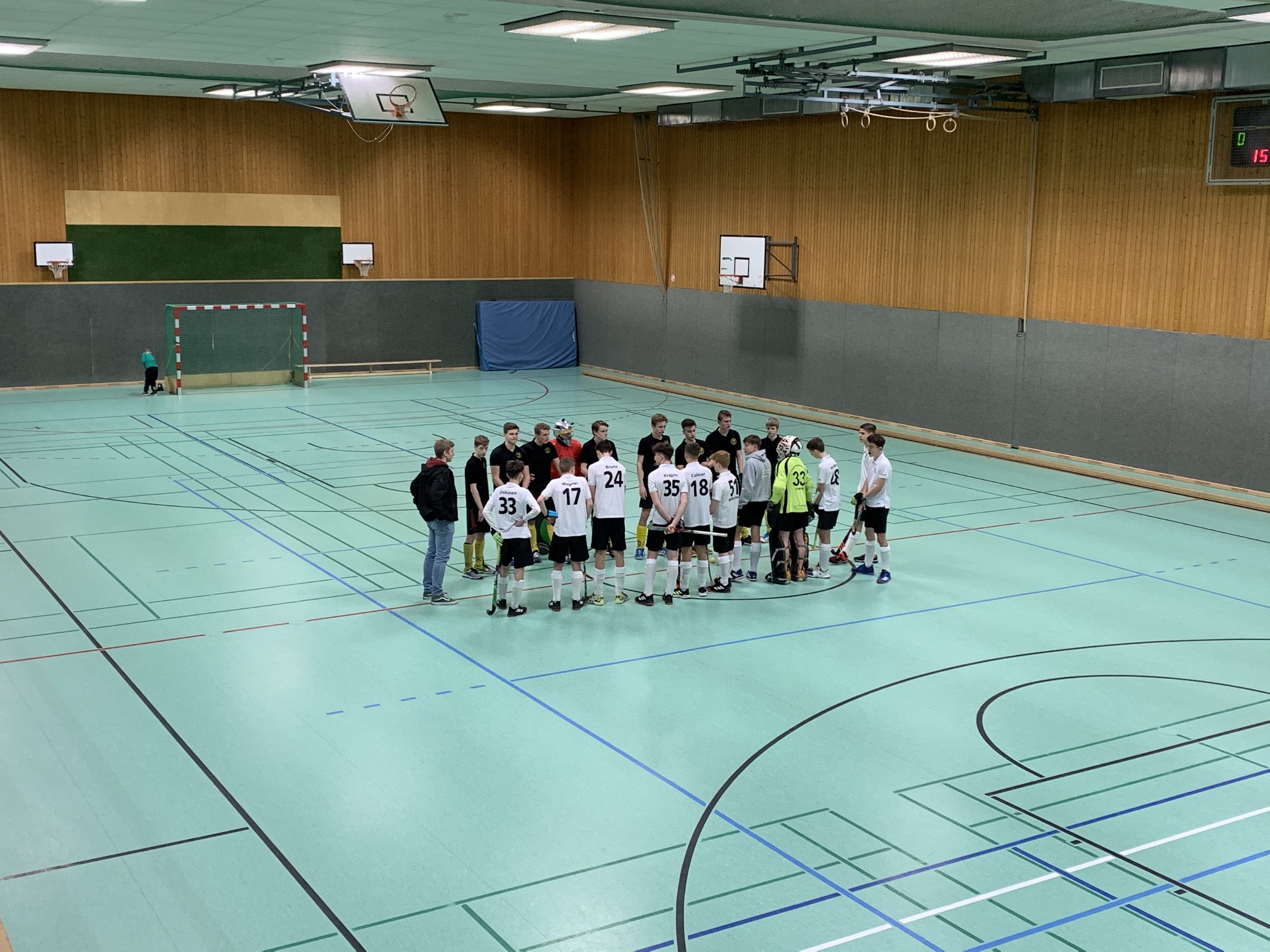 Das Finale um den Einzug in die Zwischenrunde: Sowohl den Jungs vom Moerser TV als auch den HIOBS war klar, am Ende dieses Spiels zählt nur ein Sieg. Der Gewinner zieht in die Zwischenrunde ein und für den Unterlegenen ist die Saison sofort beendet. Zum Spielbeginn merkte man beiden Mannschaften die Nervosität an. Dies nutzte Moers in der 2. Minute dann auch eiskalt zum 0-1 aus und ging in Führung.  Die HIOBS spielten mit einem sicheren Spielaufbau aus der Abwehr heraus und wirkten sehr ballsicher. Der Spielfluss war da und es wurde in allen Mannschaftsteilen konzentriert gearbeitet. Dennoch fiel in der 7. Minute das 0-2.  Der starke Teamgeist und der absolute Wille das Spiel zu gewinnen, hat die Jungs weiter am Matchplan ihrer Trainer arbeiten lassen. Mit Geduld und sauberen Spielzügen schaffte Laurin in der 11. Minute dann den Anschlusstreffer zum 1-2. Nur eine Minute später erzielte Matz mit einem platzierten Schuss den Ausgleich und die Hoffnung war wieder da.  Mit der Schlusssirene schaffte Cani dann die viel umjubelte erste Führung für die HIOBS. Mit diesem Motivationsschub ging es  in die Pause. Das Spiel hatte bisher viel Kampf und Spannung zu bieten. Für die 2. Halbzeit hatten sich beide Mannschaften viel vorgenommen. In der 2. Minute schaffte es Tom mit viel Geduld, die Führung weiter auszubauen. Es stand somit 4-2. Das Spiel wurde nun etwas ruppiger , war aber überwiegend fair. Mit sehr viel Kraft schoss Cani sein nächstes Tor in der 5. Minute von rechts in das Moerser Tor. Der Bann war gebrochen und die HIOBS dominierten nun das Spiel. Sie ließen ab diesem Zeitpunkt keinen Zweifel daran, wer am Ende das Spielfeld als Sieger verlassen wird. Matz schraubte das Ergebnis nach einer feinen Ecke auf 6-2 nach oben, ehe Tom in der 14 Minute auf 7-2 erhöhte. Das zwischenzeitliche 7-3 für den Moerser TV war nur noch Ergebniskosmetik.