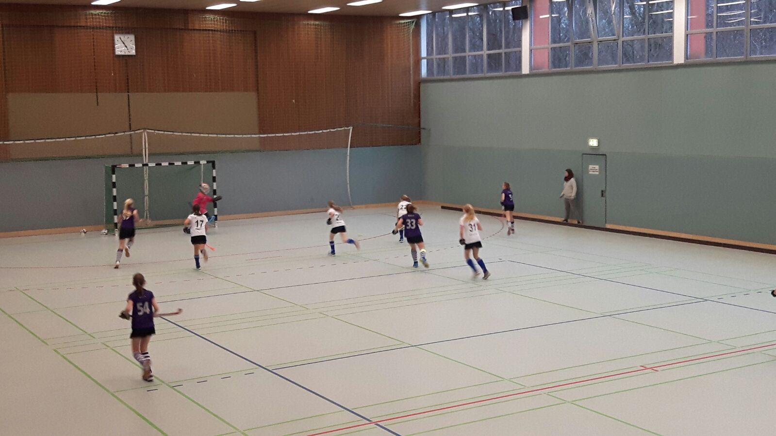 Kurz nach Wiederanpfiff hat Lucy von rechts das Außennetz auf Haltbarkeit geprüft – freilich ohne nach besser postierten Mitspielerinnen zu suchen. Irgendwie war Hiesfeld nicht richtig wach, trotzdem kam Finja in der 14. Minute nach schöner Vorlage von Sophia zu ihrem zweiten Treffer. Einen Torschuss nach Strafecke KHTC in der 18. hat Hannah weltmeisterlich mit dem Schläger aus der Luft gepflückt. Die Strafecke in der letzten Minute hat der KHTC dann aber doch noch zum Anschlusstreffer versenkt, da Hiesfeld „ein bisschen verpeilt war“. Das Team ließ aber nichts mehr anbrennen und somit wurde ein direkter Konkurrent um die Tabellenführung geschlagen.