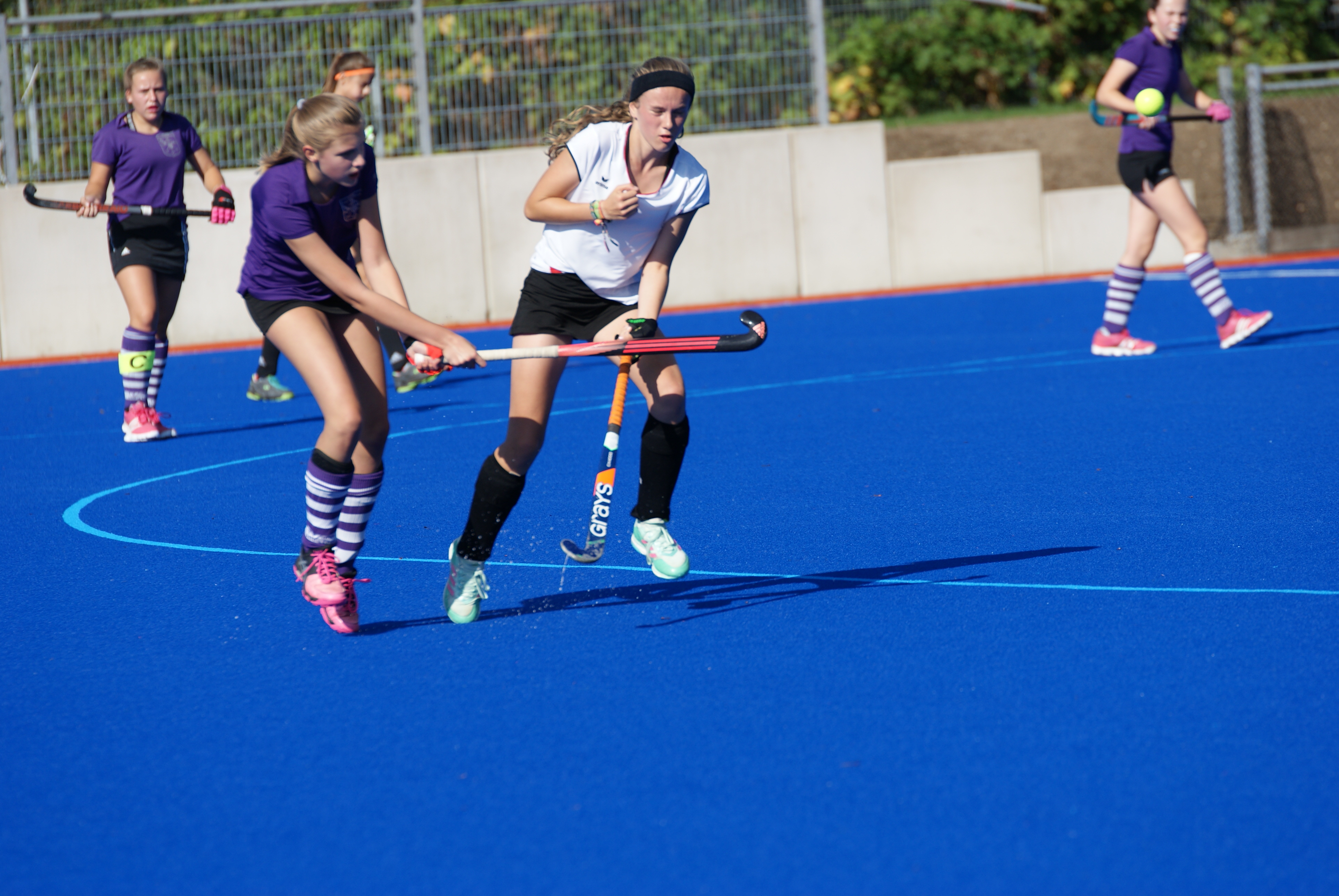 Unsere Mädchen machten es aber gut. Mit druckvollem Passspiel setzte sich unsere Mannschaft in der Hälfte der Wuppertalerinnen fest. Immer wieder kombinierte man sich in den Schusskreis, aber entweder war ein Stock der Gegnerinnen dazwischen oder auch eine Ungenauigkeit in der letzten Aktion. Zudem war zu diesem Zeitpunkt die Wuppertaler Torhüterin ein ganz starker Rückhalt ihrer Mannschaft. So musste eine kuze Ecke für die Führung herhalten.Super herausgespielt und eiskalt von Lucy Kibben abgeschlossen. Danach versuchten die Wuppertalerinnen alles um die Führung noch vor der Pause zu egalisieren und aus war es mit der ruhigen Kugel für unsere Torfrau Carla Wagner, die mehrfach Ihr ganzes Können zeigen musste. Mit ein bisschen Glück ging es in die Halbzeit mit einer 1:0 Führung.